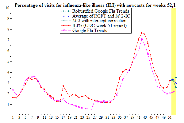 The average nowcasts for week 52 and 1, based on pooling a dynamic model with